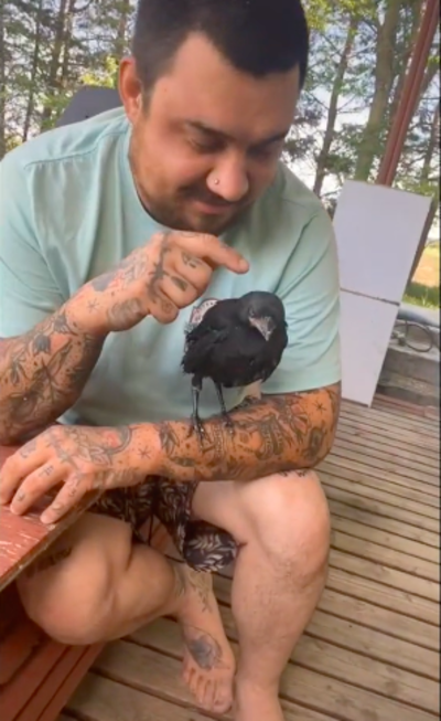 Crow Visits Family Who Saved Him Every Day For Some Cuddles