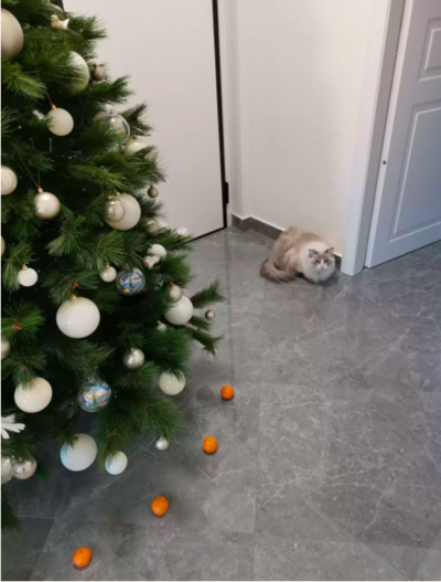 Cat Obsessed With Destroy Christmas Tree Decor Stops After Tangerine 'force Field’