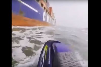 Video: Dude Cruising In The Ocean On A Jet Ski Rides Too Close To A Cargo Ship, Nearly Gets Sucked I
