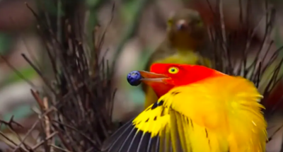 Beautiful Flame Bowerbird Performs Dramatic Mating Dance