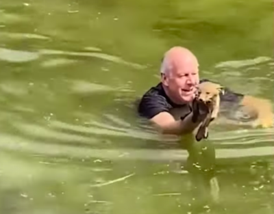 Kind Man Jumps Into Canal To Save Baby Fox